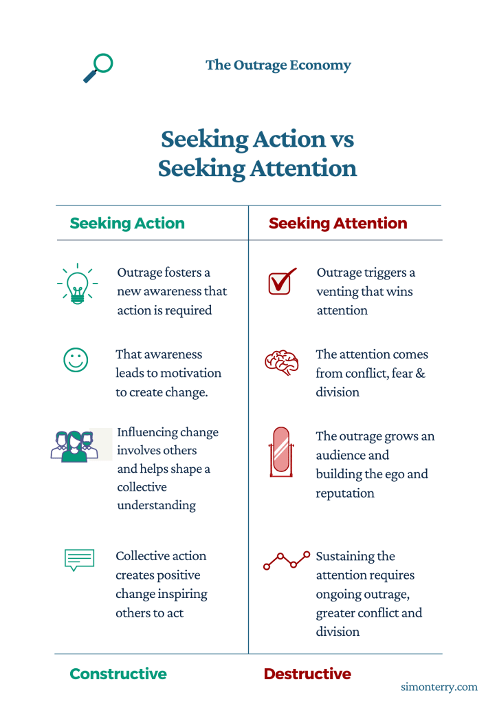 - Outrage seeking Action: a constructive cycle of leveraging outrage externally to seek collective change