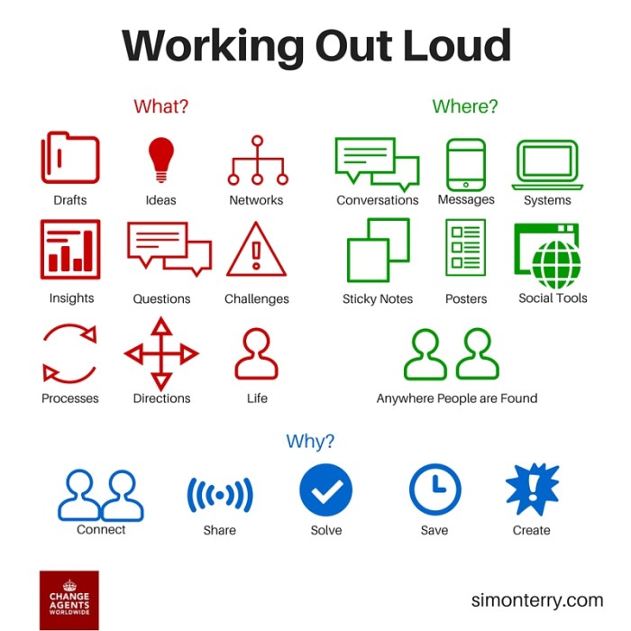 If it has never occurred to you or your organisation that almost all work is a collaboration and that all people learn from sharing, then working out loud is a shock to your system and a reason to look again with new intent. The vehemence of the response that all working out loud does is create noise tells me that this shock is working.